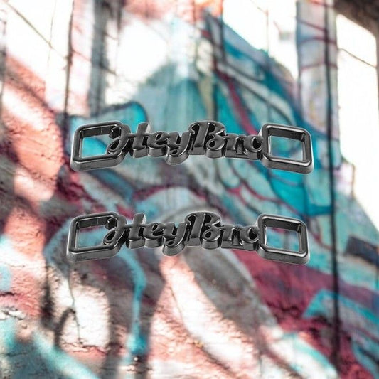2 Paar Schnürsenkel Endstücke „Hey Bro“ - aus Metall für Sneaker - anthrazit