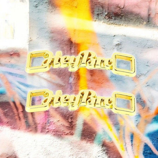 1 Paar Schnürsenkel Clips „Hey Bro“ - Metall Schuhschmuck Anhänger für Sneaker - gold