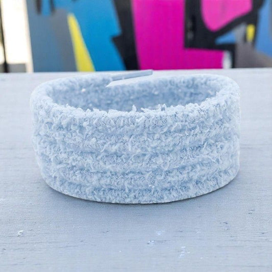 1 Paar runde Plüsch Schnürsenkel (Ø 7 mm, Länge 140 cm) - Teddy Touch Collection - hellblau