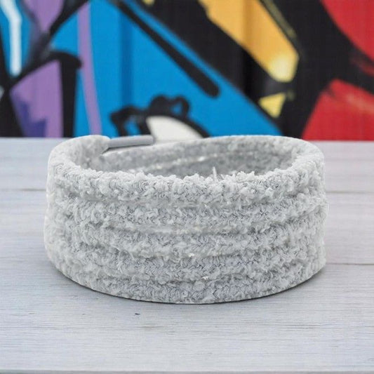 1 Paar runde Plüsch Schnürsenkel (Ø 7 mm, Länge 90 cm) - Teddy Touch Collection - hellgrau