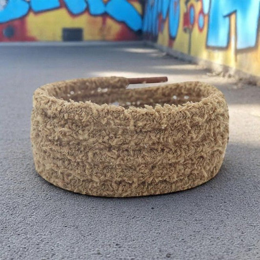 1 Paar runde Plüsch Schnürsenkel (Ø 7 mm, Länge 120 cm) - Teddy Touch Collection - camel
