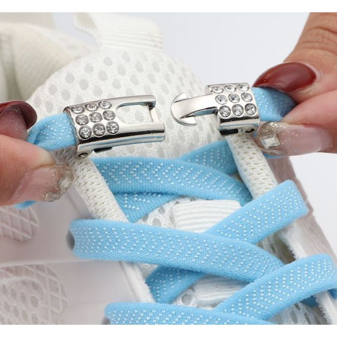 These elastic shoelaces are perfect for everyday sneakers . The stylish closure with glittering rhinestones enhances the look of your shoes, and thanks to the quick-lace system without tying, putting on your shoes has never been faster.