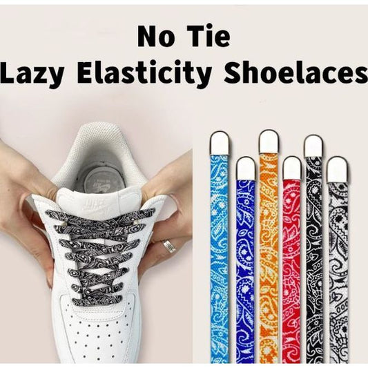 1 paire de lacets plats élastiques sans nœud (100 cm de long, 8 mm de large) - Bandana Vibes - noir
