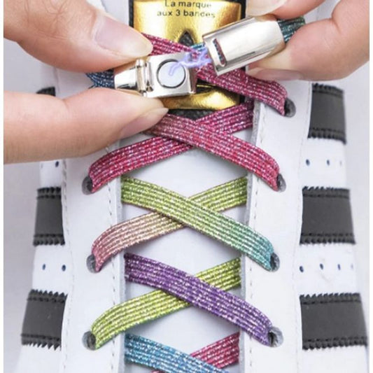 1 paire de lacets élastiques sans nouage - avec fermeture magnétique - confortables et rapides - arc-en-ciel