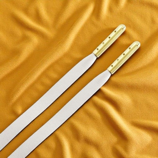 1 paire de lacets plats en cuir synthétique (90 cm de long, 7 mm de large) - Série LuxeLine - blanc/or