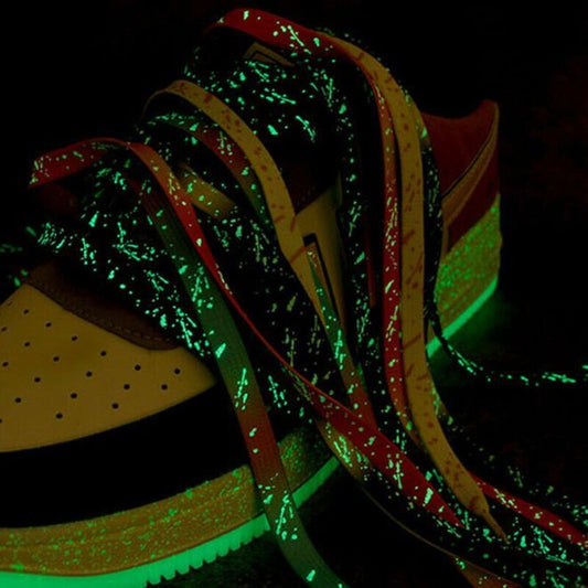 Durch den Glow-in-the-Dark-Effekt werden die Senkel bei Lichteinwirkung aufgeladen und leuchten danach selbstständig im Dunkeln.