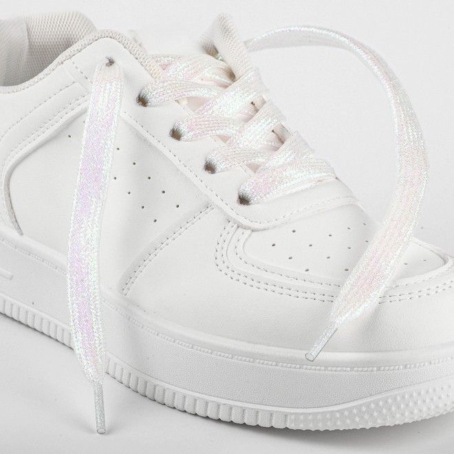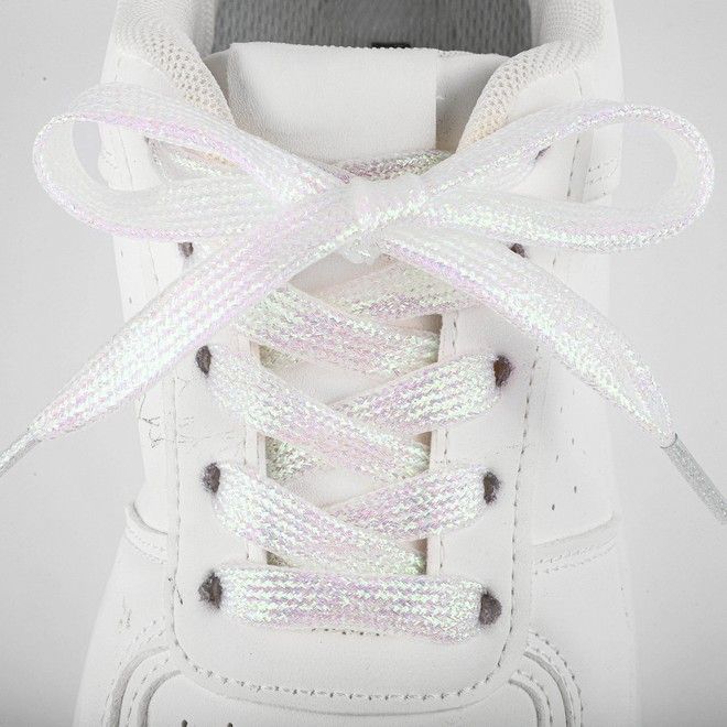 Diese flachen Schnürsenkel aus der LaceGodZ StarGlow Series verleihen deinen Schuhen einen eleganten, perlmutt-weissen Glitzer-Look mit irisierendem Schimmereffekt.. Mit 120 cm Länge und 10 mm Breite passen sie perfekt zu Sneakers, Boots und modischen Streetwear-Styles. Das robuste Gewebe sorgt für langlebigen Halt, während stabile Endkappen ein müheloses Schnüren ermöglichen.