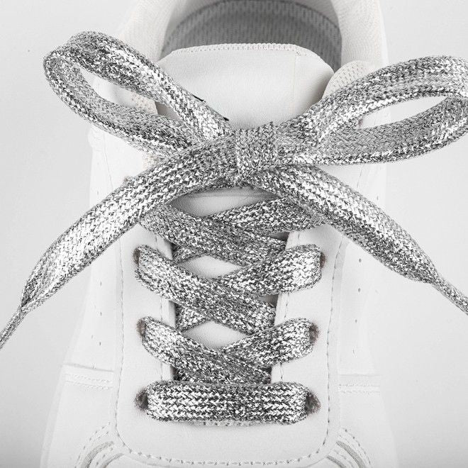 Diese flachen Schnürsenkel aus der LaceGodZ StarGlow Series verleihen deinen Schuhen einen stilvollen, metallic-silbernen Glitzer-Look, der garantiert auffällt. Mit 120 cm Länge und 10 mm Breite passen sie perfekt zu Sneakers, Boots und modischen Streetwear-Styles. Das robuste Gewebe sorgt für langlebigen Halt, während stabile Endkappen ein müheloses Schnüren ermöglichen.